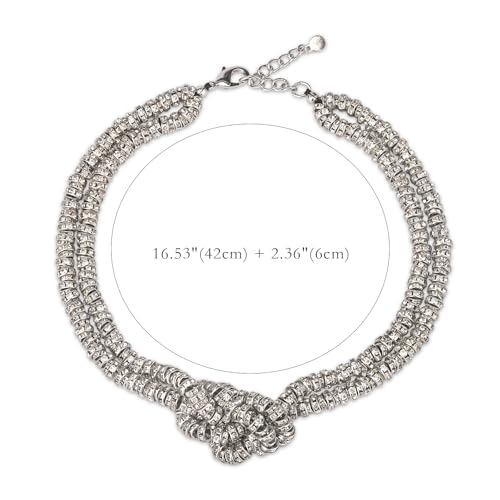 Statement Bib Knot Necklace, Bling Double-Layered Rhinestone Chunky Rondelle Beads Infinity Choker Collar Necklace for Women Trendy, Dress Prom Costume Christmas Party Formal 5