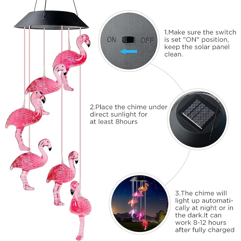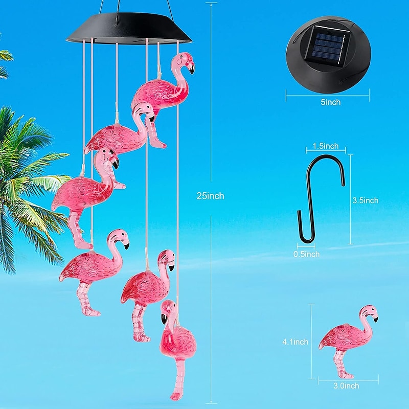 Solar Wind Chimes Lamp Outdoor Light Waterproof Flamingos Courtyard Garden Christmas Home Patio Balcony Landscape Decorative Lights 9