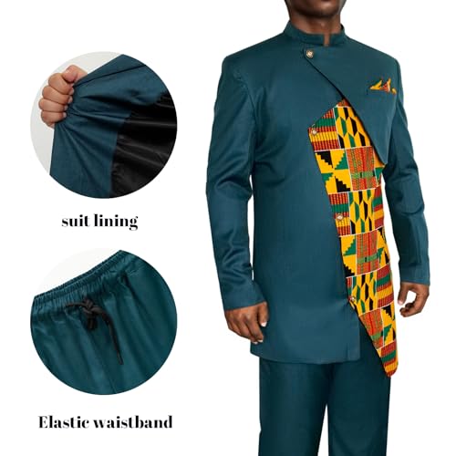 African Suits for Men Slim Fit Jacket Pants 2 Piece Set Dashiki Outfits Wax Patchwork Attire Wedding Clothes 5