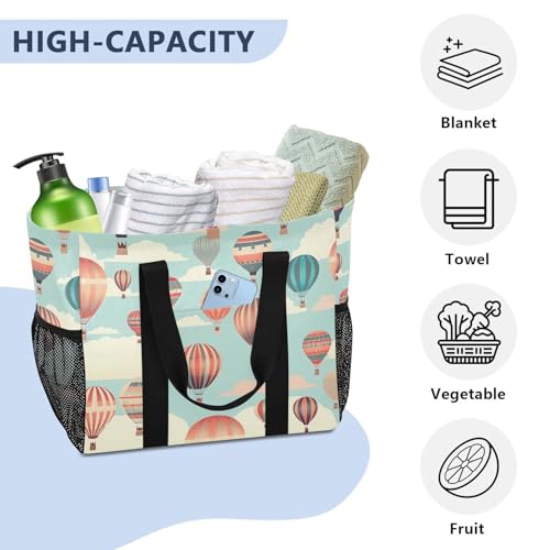 HOT ! Sky Hot Air Balloons Large Beach Bag Waterproof Beach Tote Bags for Women Travel Gym Pool