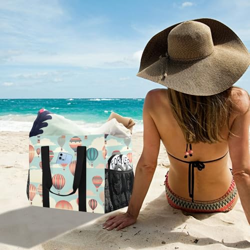 Sky Hot Air Balloons Large Beach Bag Waterproof Beach Tote Bags for Women Travel Gym Pool 4