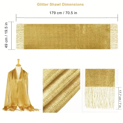 Womens Sparkling Shawls and Wraps for Evening Dresses, 2 pack Metallic Shawl, Glitter Wedding Party Scarf with Long Tassels 5