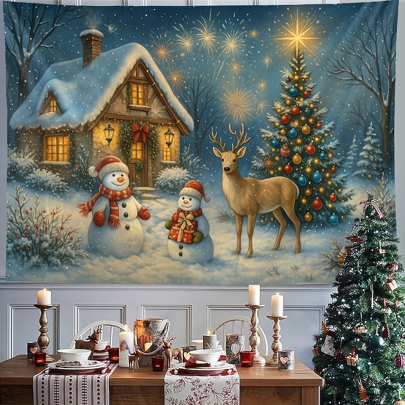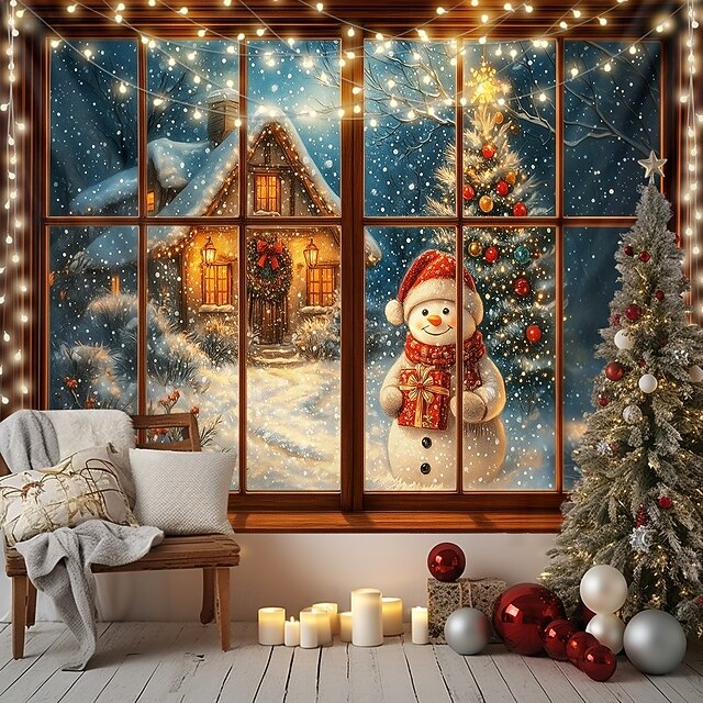 $14.49 - Christmas Wall Tapestry Backdrop, Cozy Window Scene with Snowman, 2025 Xmas Winter Tree and Lights, Festive Holiday Wall Hanging for Bedroom Living Room 2025. Shop for cheap Christmas Tapestry Hanging online? Buy at lightinthebox.com on sale today!