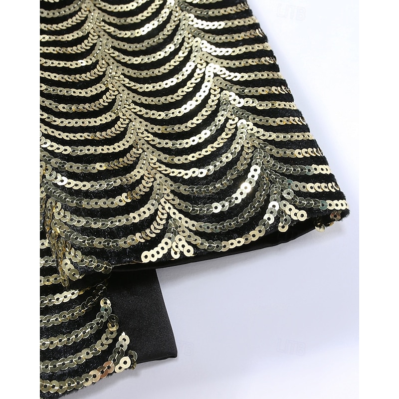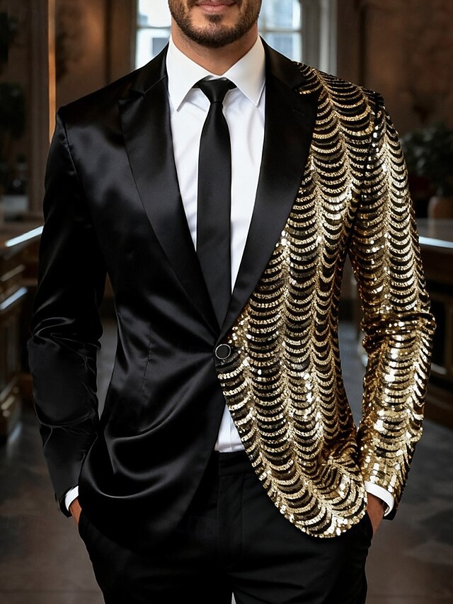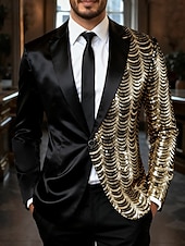 More information about Men's Blazer Business Cocktail Party Wedding Party Fashion Casual Spring Fall Polyester Color Block Pocket Buttons Comfortable Single Breasted Blazer Gold