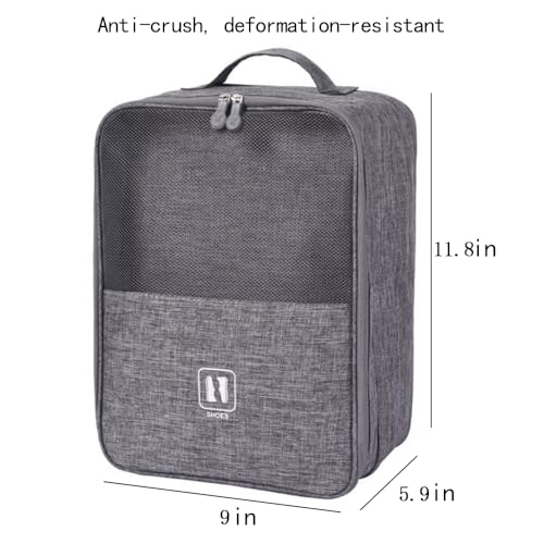 Shoe Bag for Travel Waterproof Travel Shoe Bag for Packing in Suitcase 3 Layers Portable Shoe Storage Pouch for Travel Gym Moving House Breathable Zippered Shoes (Grey, 11.8"L x 9"W x 5.9"H) 5