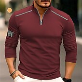 More information about Men's T Shirt Zip Half Shirt Tee Top Long Sleeve Shirt Long Sleeve Quarter Zip Spring & Fall National Flag Fashion Designer Basic Pocket Vacation Street Going out Dark Gray Blue Red Top Tee for Men