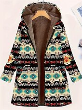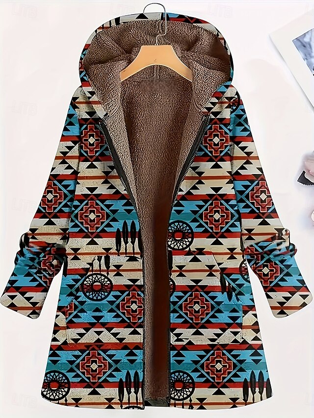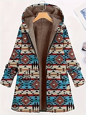 More information about Women's Zip Up Hoodies Geometric Casual Long Sleeve Hooded Long Tops Street Going out Zipper Pocket Blue Brown Green Fall Winter