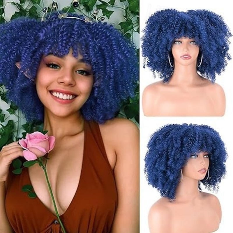 $34.99 - Afro Curly Wig with Bangs Synthetic Afro Wigs for Women Heat Resistant Short Kinky Curly Wigs for Daily Party 2025. Shop for cheap Synthetic Trendy Wigs online? Buy at lightinthebox.com on sale today!