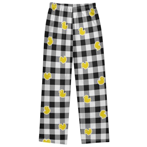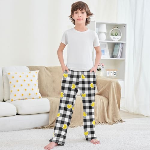 Boy's Pj Pants Duck Chick Black White Plaid Lounge Bottoms Elastic Kids Sweatpants Joggers with Pockets Size 6-14 6
