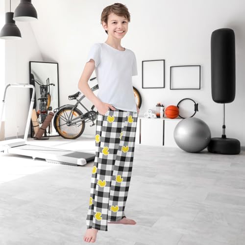 Boy's Pj Pants Duck Chick Black White Plaid Lounge Bottoms Elastic Kids Sweatpants Joggers with Pockets Size 6-14 7