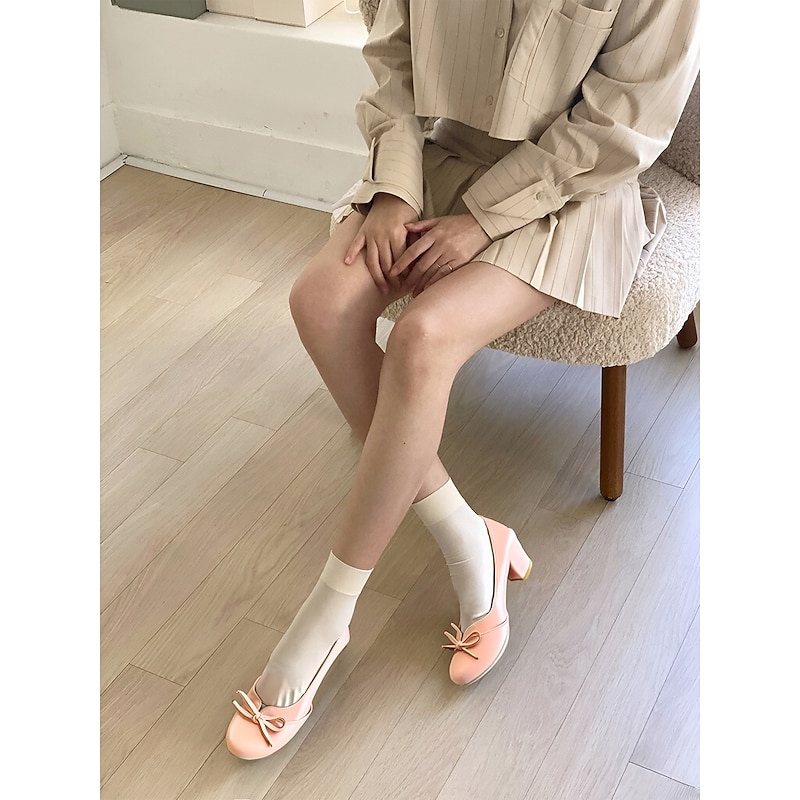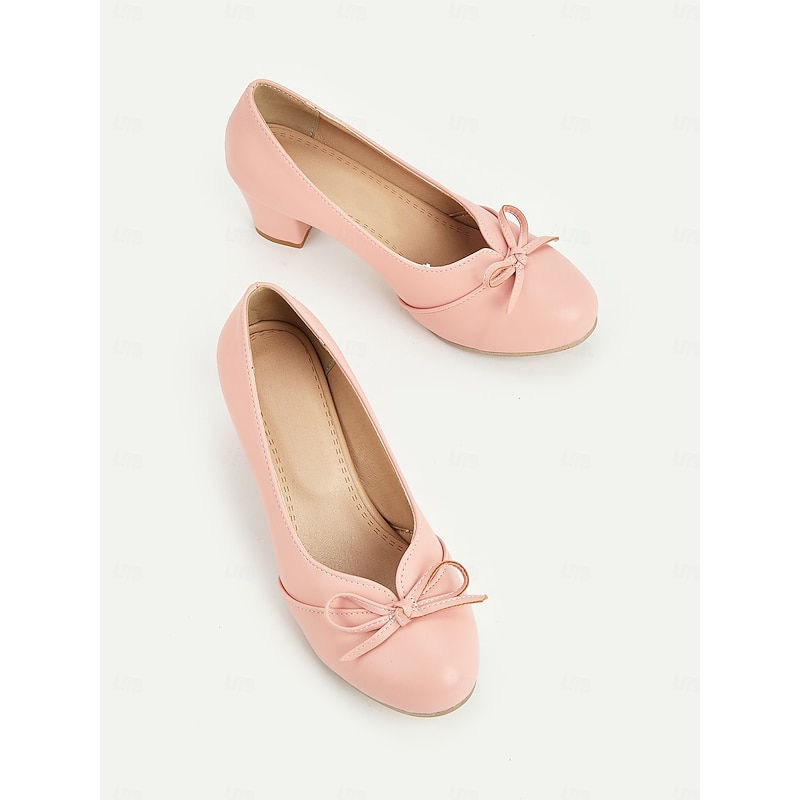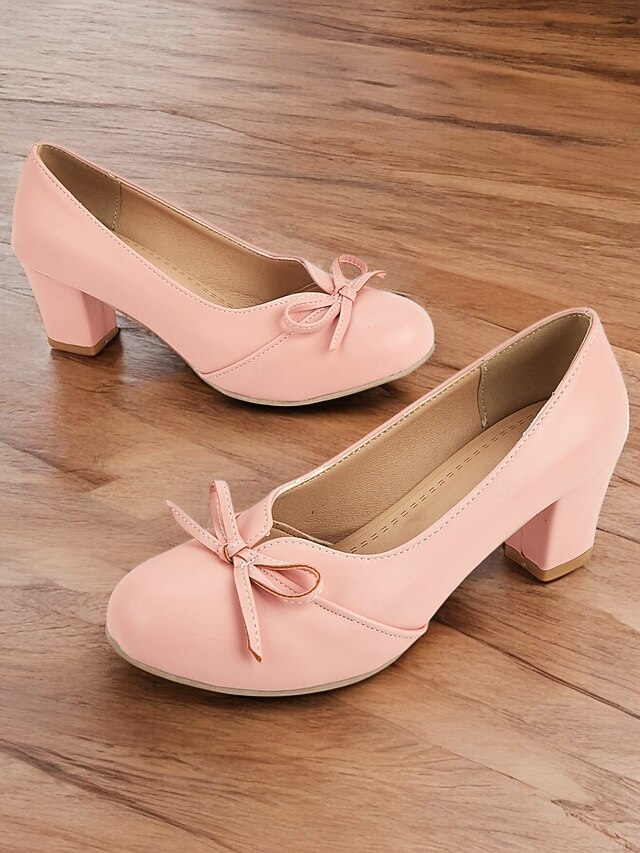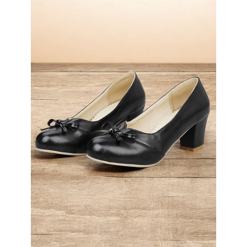 Highlights - Elegant PU upper material - Luxurious synthetic leather lining - Stylish bowknot embellishment - Comfortable chunky heel - Classic round toe shape - Durable rubber outsole - Suitable for daily wear