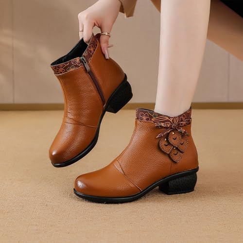 More information about Women's Leather Dress Ankle Boots,Vintage Bow Comfort Chunky Block Waterproof Non-slip Side Zip Casual Short Booties