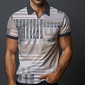 More information about Men's Plaid Zip Polo Shirts Golf Shirt Short Sleeve Polo Shirts Collared Shirts Vintage Casual Vacation Wear Formal Wear Festival Wear 3D Print Quarter Zip Polo Summer Spring Light Grey