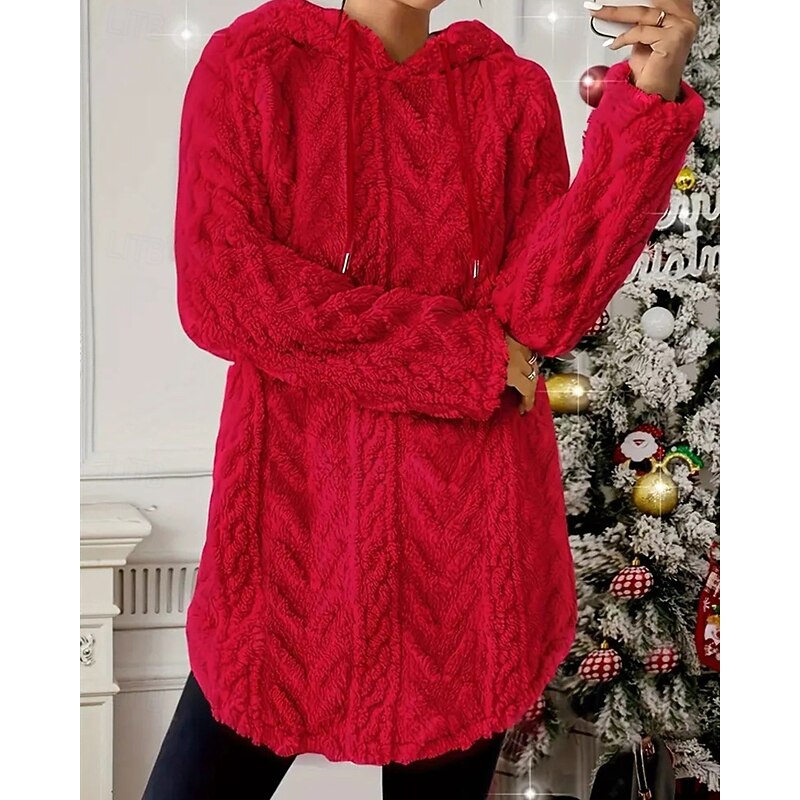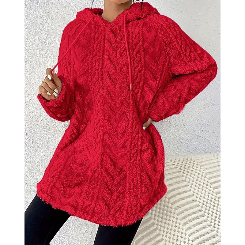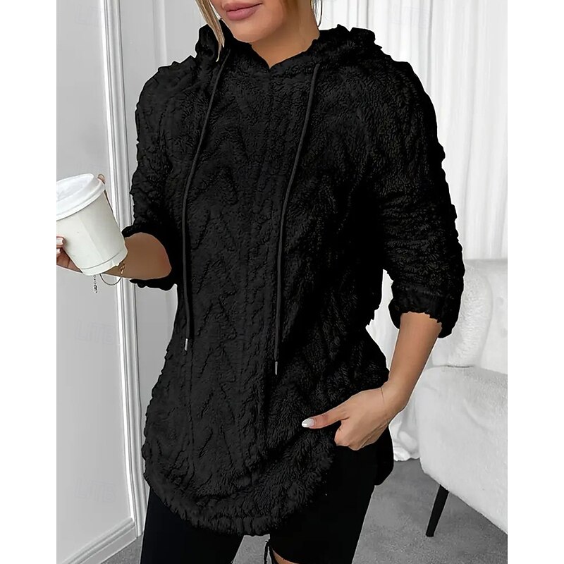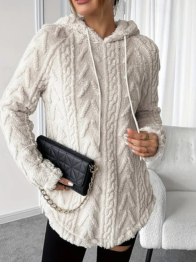 More information about Women's Pullover Hoodie Sweatshirt Plain Streetwear Casual Sherpa Fleece Long Sleeve Hooded Regular Tops Street Holiday Drawstring Black White Red Purple Beige Fall Winter