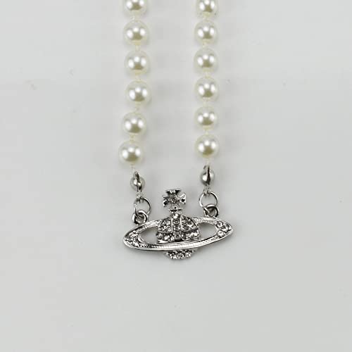 HOT ! FENLDY Rhinestone Faux Planet Saturn Pearl Necklace for Women Jewelry, Fake Pearl Collar Pendant a Necklace Men with Charm for Girls Y2k Jewelry Ladies' Wedding Pearl Bead Chain Crystal Choker