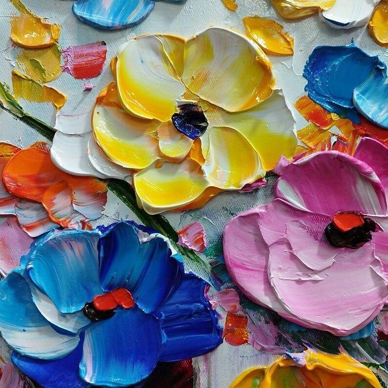 Handmade Oil Painting Canvas Wall Art Decoration 3D Palette Knife Colorful Flowers for Home Decor Rolled Frameless Unstretched Painting 1