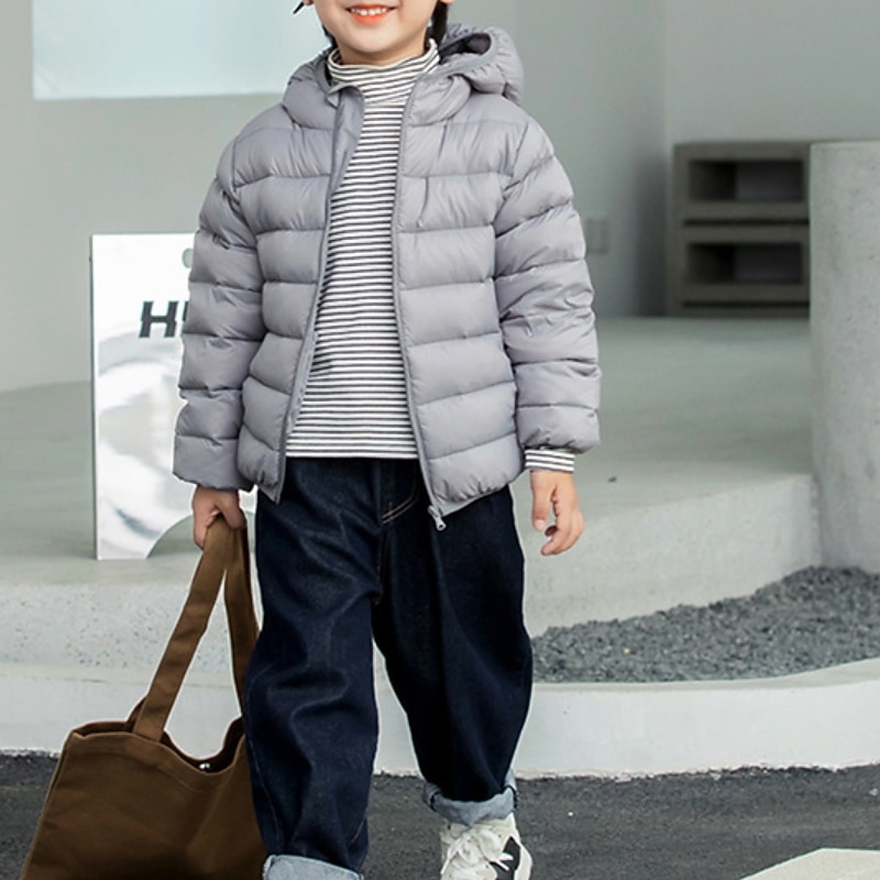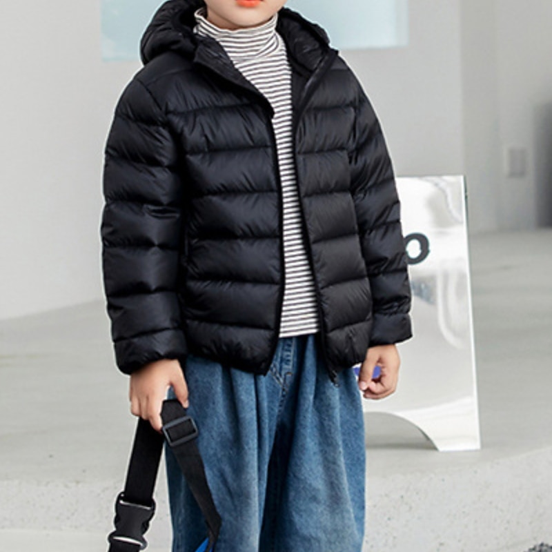 HOT ! Kids Boys' Down Coat Outerwear Solid Color Long Sleeve Coat School Adorable Black Yellow Pink Fall Winter 7-13 Years