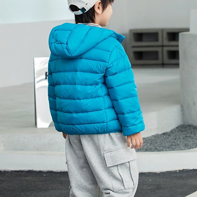 Kids Boys' Down Coat Outerwear Solid Color Long Sleeve Coat School Adorable Black Yellow Pink Fall Winter 7-13 Years 5