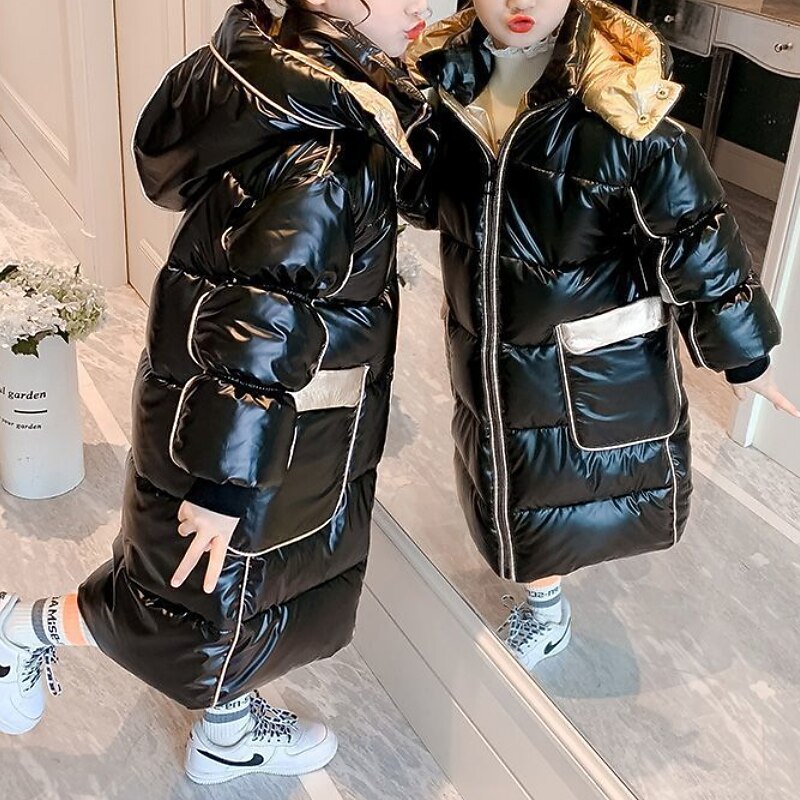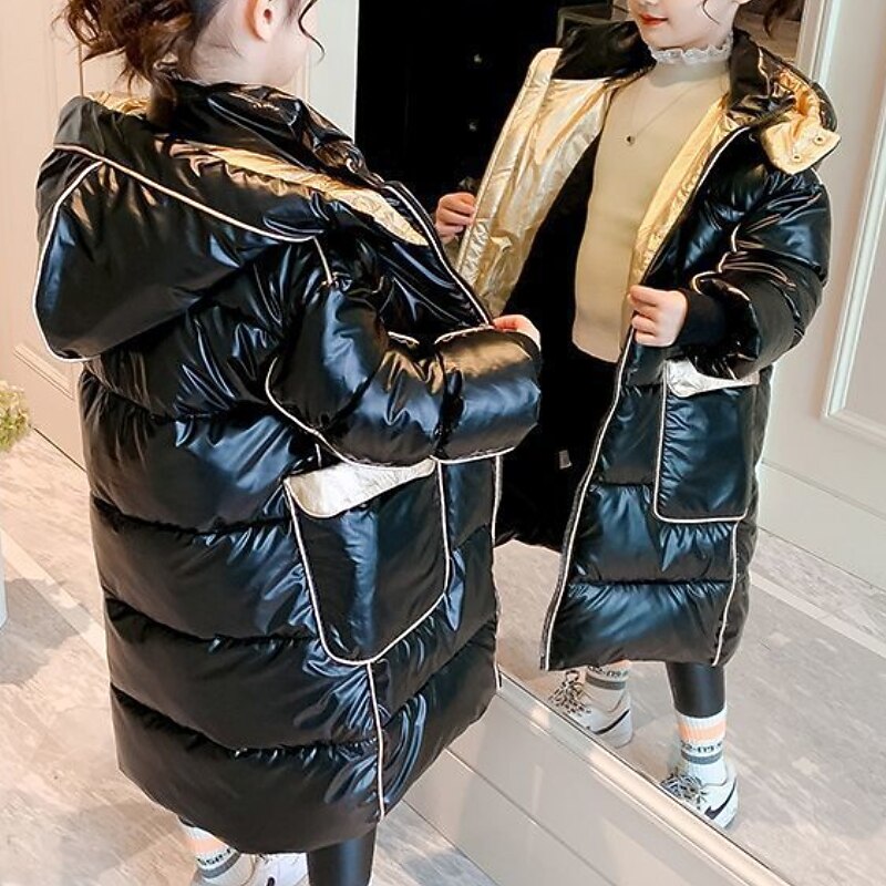 HOT ! Kids Girls' Down Coat Puffer Jacket Solid Color Fashion Outdoor Cotton Coat Outerwear 4-13 Years Fall Champagne