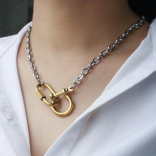 Waterproof 316L Stainless Steel Two Tone Key Lock Pendant Necklace Choker for Women Men PVD Plating Jewelry 5