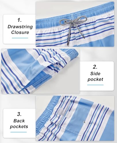 • 【Quick Dry Stretch Fabric】:Men's swim shorts are made of 92% polyester and 8% elastane. All get great quick dry function, normally take 5 To 10 minutes, board shorts will dry already. offer a lightweight, breathable, UPF 50+ and soft touch which more comfortable and move-freely.