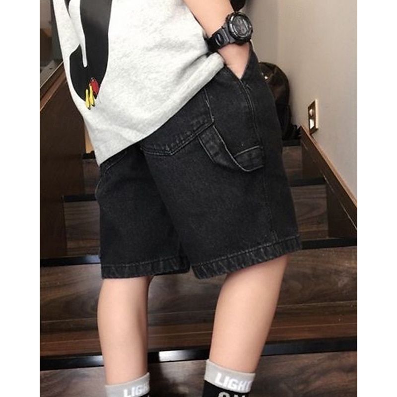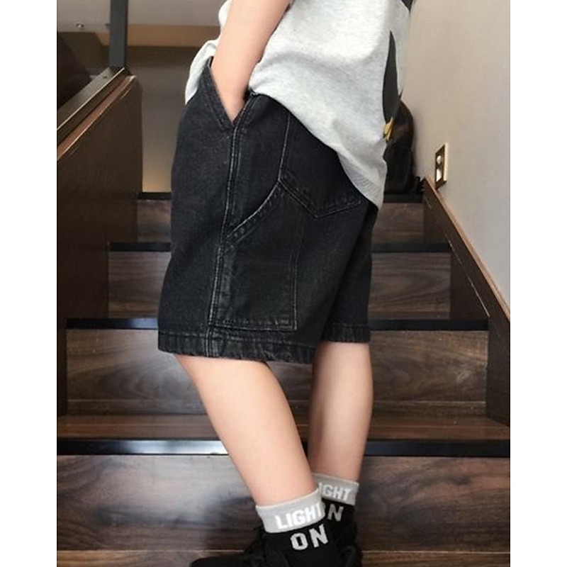 Kids Boys Shorts Solid Color Breathable Soft Comfort Shorts School Cool Basic Black Blue Mid Waist 12