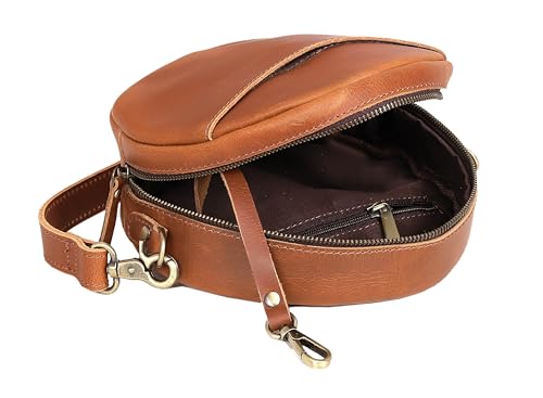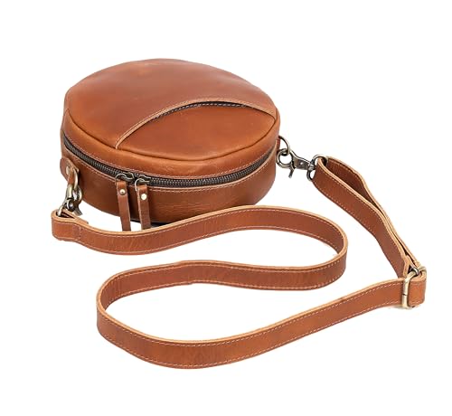 HOT ! Leather Crossbody Bags for Women Trendy Circle Cross Body Shoulder Bag Designer Round Purses (Tan)