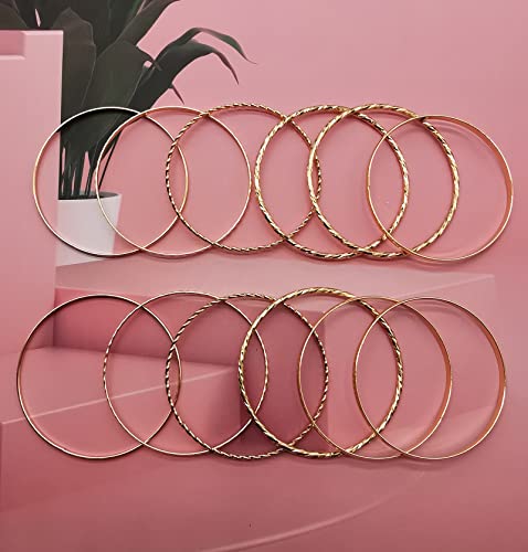 12Pcs Bangle Collection Alloy Metal Textured Color Design Jewelry Large Size Bangle Bracelets Set for Women(Gold) 6