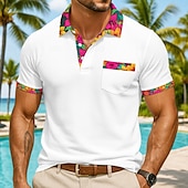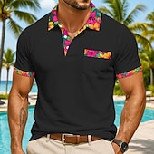 More information about Men's Polo Golf Shirt Casual Holiday Lapel Short Sleeve Fashion Basic Floral Hawaii Patchwork Pocket Summer Spring Regular Fit Black White Fuchsia Turquoise Polo