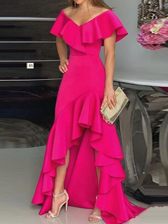 Kentucky Derby Women's Maxi Dress A Line Dress Summer Dress Puff Sleeve Dress Elegant Semi Formal Wedding Guest Engagement Cocktail Party Regular Fit Graphic Sleeveless V Neck Black Wine Blue Fuchsia 11