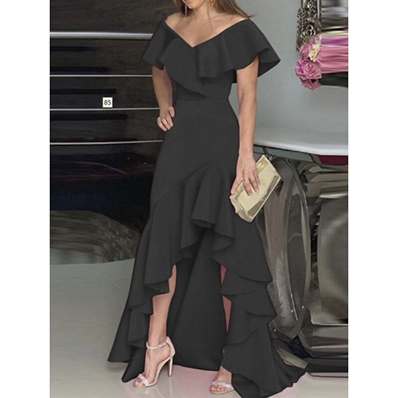 HOT ! Kentucky Derby Women's Maxi Dress A Line Dress Summer Dress Puff Sleeve Dress Elegant Semi Formal Wedding Guest Engagement Cocktail Party Regular Fit Graphic Sleeveless V Neck Black Wine Blue Fuchsia