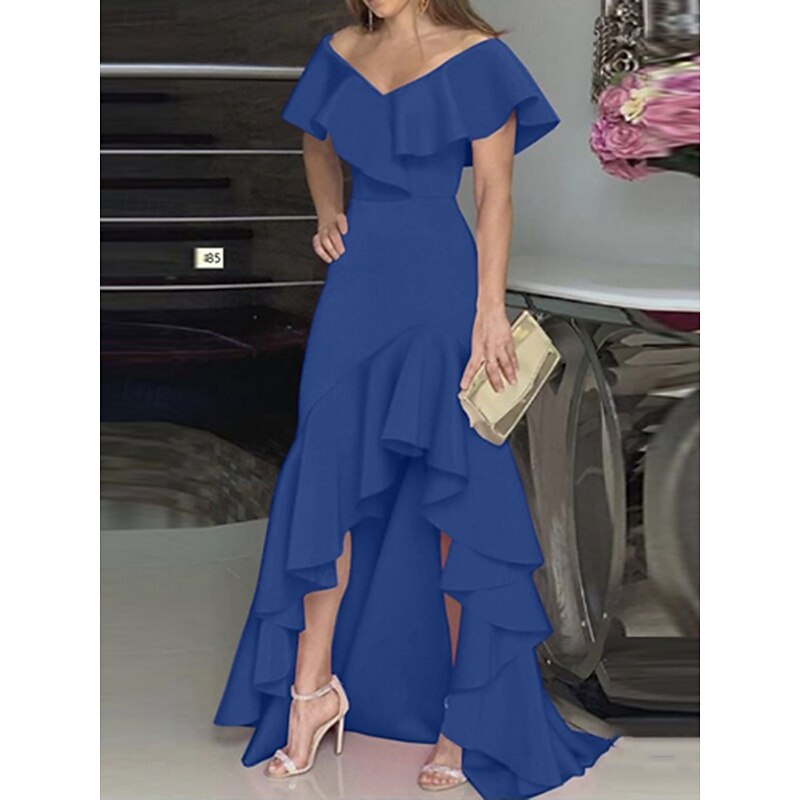 More information about Kentucky Derby Women's Maxi Dress A Line Dress Summer Dress Puff Sleeve Dress Elegant Semi Formal Wedding Guest Engagement Cocktail Party Regular Fit Graphic Sleeveless V Neck Black Wine Blue Fuchsia