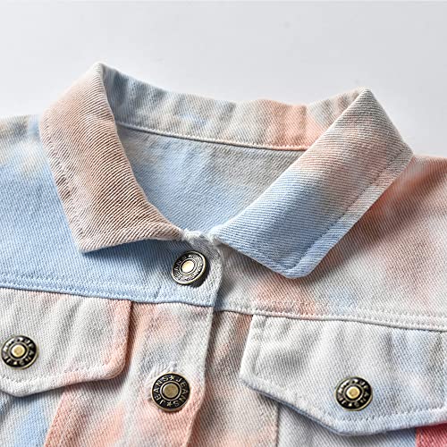 Meufam Toddler Baby Boy Girl Tie Dye Long Sleeve Denim Jacket Ripped Button Down Jean Jacket Coat Spring Fall Outerwear 5