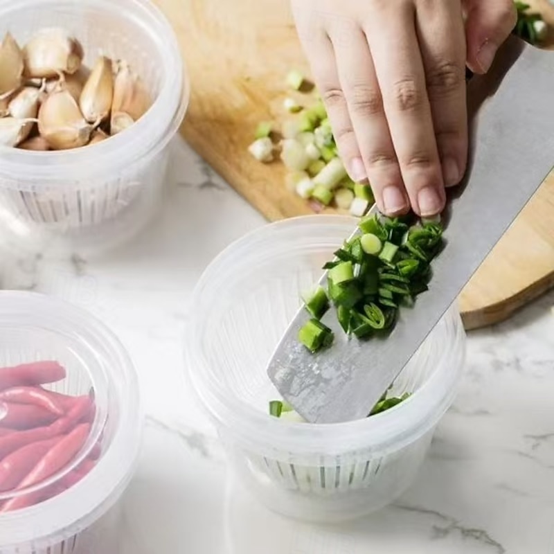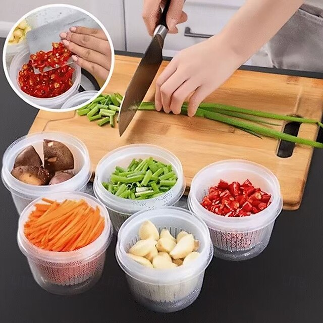 $11.49 - 5pcs Food Storage Boxes with Lids, Kitchen Onion Ginger Garlic Storage Containers, Round Prep Bowls with Drainage for Refrigerator, Fresh-Keeping Spice Organizer 2025. Shop for cheap Kitchen Storage online? Buy at lightinthebox.com on sale today!