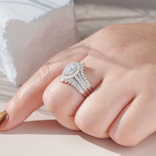 Newshe Jewellery Cubic Zirconia Wedding Ring Sets for Women 925 Sterling Silver Engagement Rings Bridal Band Enhancer Set Pear Travel Anniversary Size 5-10 6