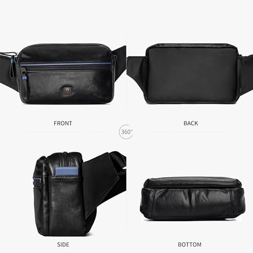 Men's Leather Crossbody Bag 3L, Black with Blue Stripes, Adjustable Nylon Strap & Multi-Pocket 5