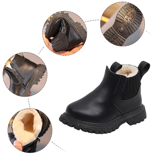 Toddler Unisex Winter Boots Little Boys Girls Fleece Lined Outdoor Snow Shoes Side Zipper Ankle Boots School Shoes 3