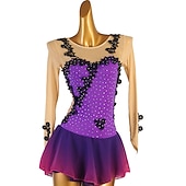 More information about Figure Skating Dress Women's Girls' Ice Skating Dress Violet Patchwork Open Back Mesh High Elasticity Training Competition Skating Wear Classic Sleeveless Ice Skating Figure Skating