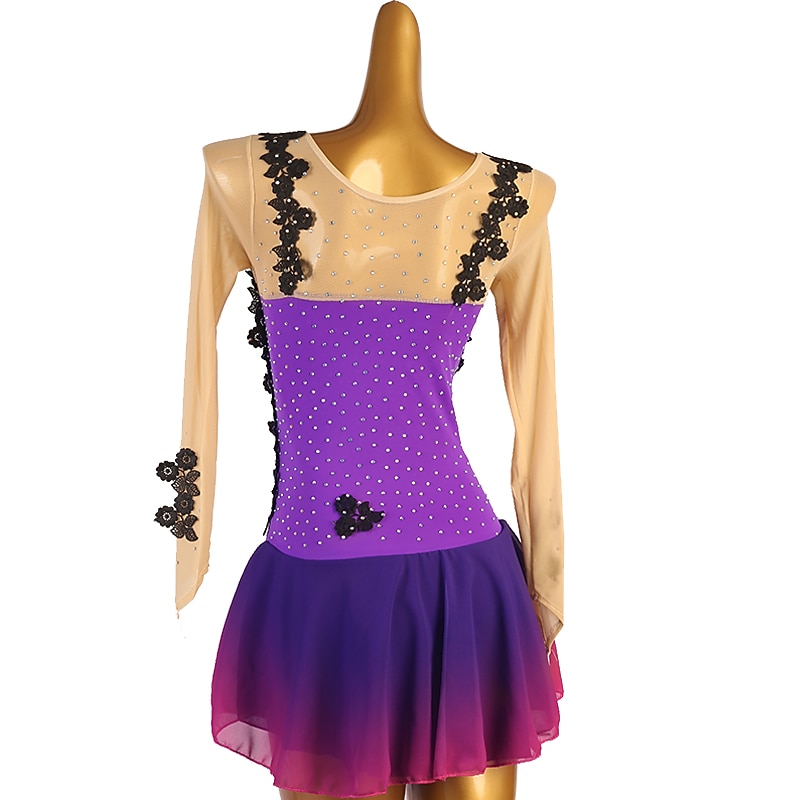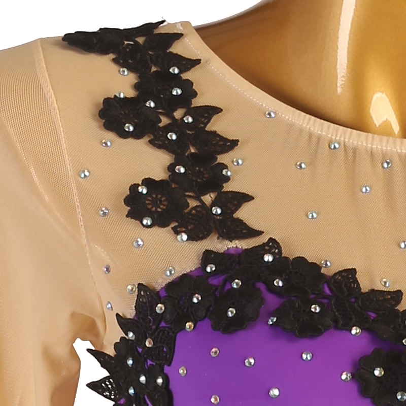 Highlights This violet Figure Skating Dress is designed for a graceful open back silhouette with a classic patchwork and sleeveless design from high elasticity and breathable mesh fabric Handmade with careful detailing - ideal for training or competitions