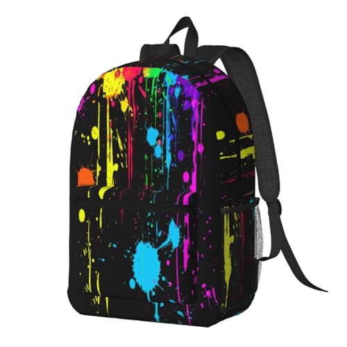 Neon Splatter ink Fashionable Daypack 17 Inches Zippers Backpack Double Shoulder Bag for Women Men 1
