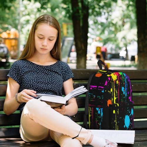 Neon Splatter ink Fashionable Daypack 17 Inches Zippers Backpack Double Shoulder Bag for Women Men 7