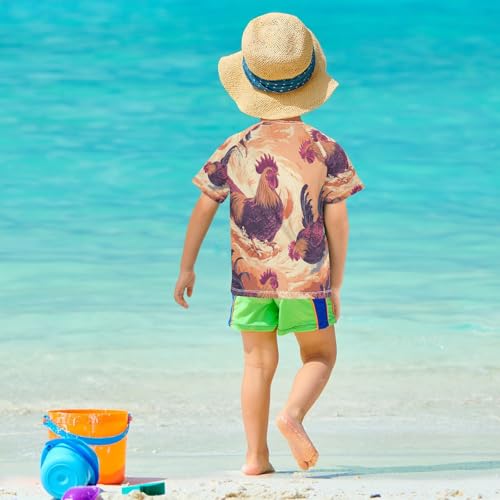 Boys Short Sleeve T-Shirts Rooster Retro Animal Rashguard Kids Swim Shirts Sun UPF 50+ 2