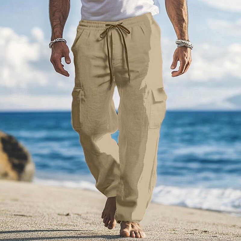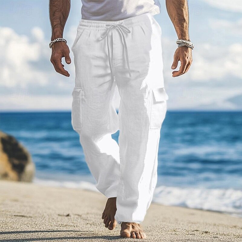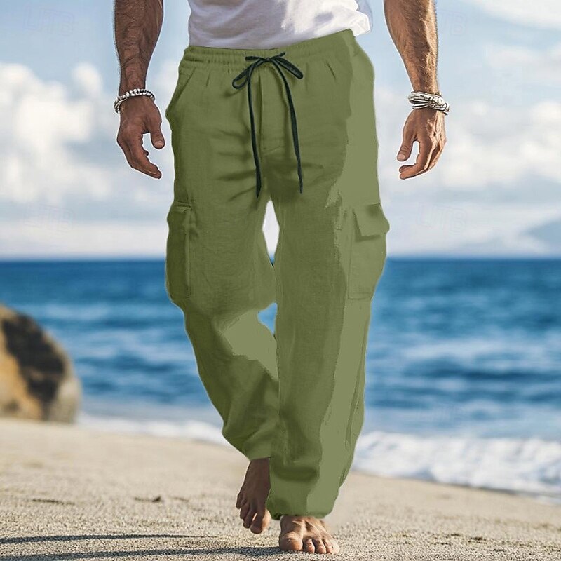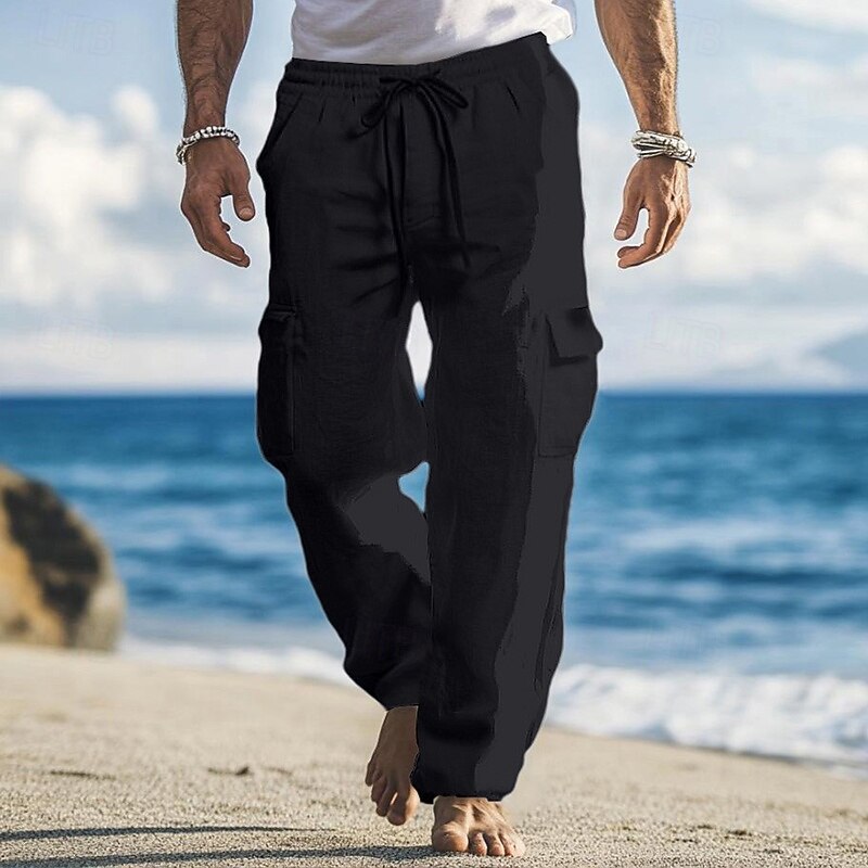 More information about Men's Cargo Pants Linen Pants Trousers Summer Pants Baggy Pants Drawstring Elastic Waist Multi Pocket Plain Comfort Breathable Full Length Outdoor Holiday Going out Vacation Fashion Loose Fit Black