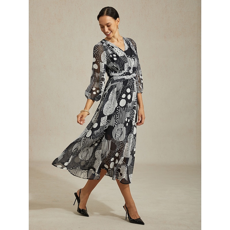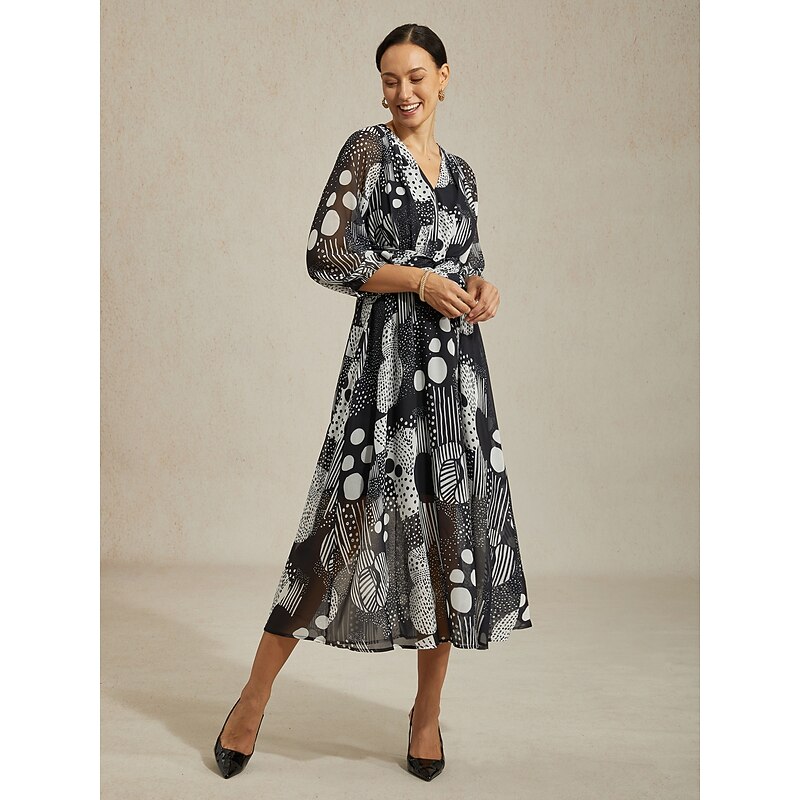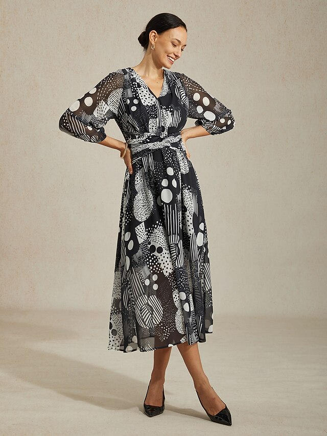 HOT ! Women's Women Casual Dress Midi Dress Black Long Sleeve Abstract Summer Cross-Seasons V Neck Vacation Bohemian S M L