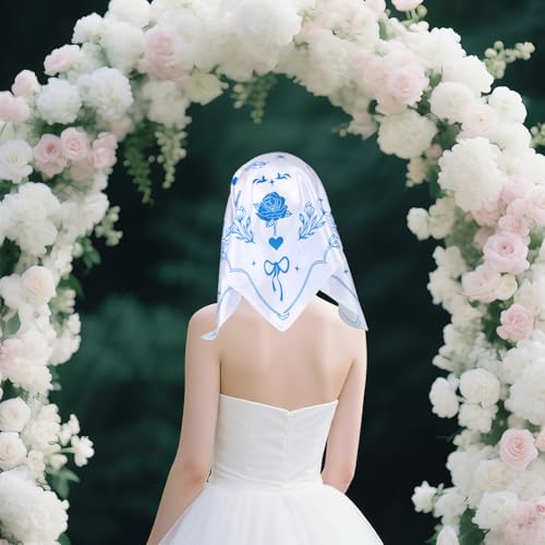 • Package Included: You will get 1 piece of white and blue bridal bandana, measuring about 60x60cm/23.62x23.62in. Adds a chic and graceful touch to any bride's wedding look.
