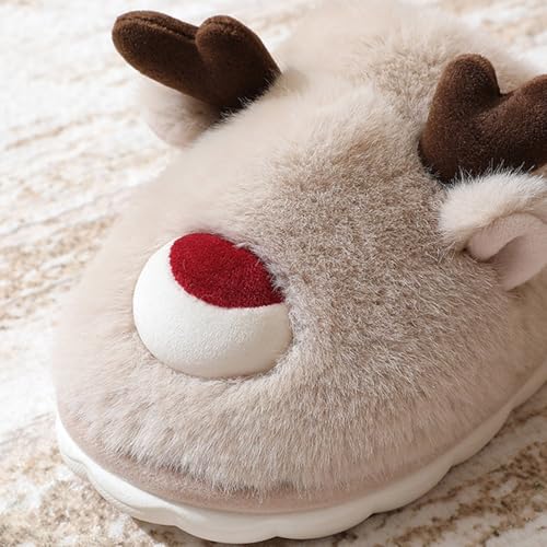 Womens Cute Reindeer Antlers House Slippers Funny Christmas Deer Horn Ear Indoor Home Shoes Plush Fuzzy Warm Bedroom Slippers Matching Family Winter Fall Shoes 5