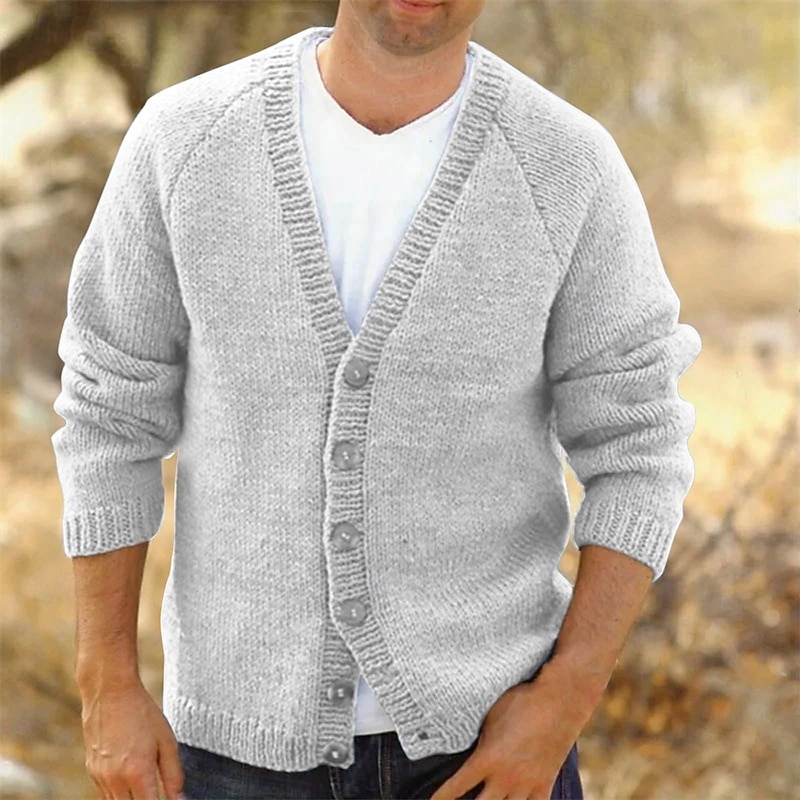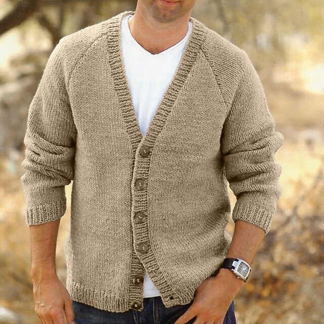 More information about Men's Dress Sweater Cardigan Sweater Knit Sweater Ribbed Knit Regular Button Up Solid Color V Neck Fashion Classic Daily Wear Date Clothing Apparel Spring Fall & Winter Royal Blue Blue S M L