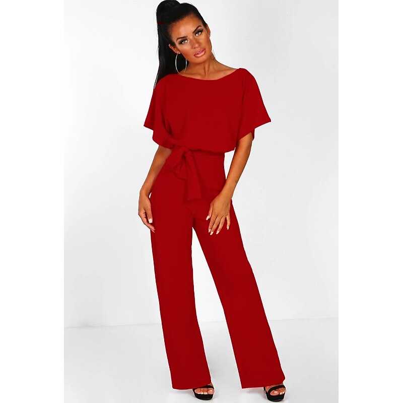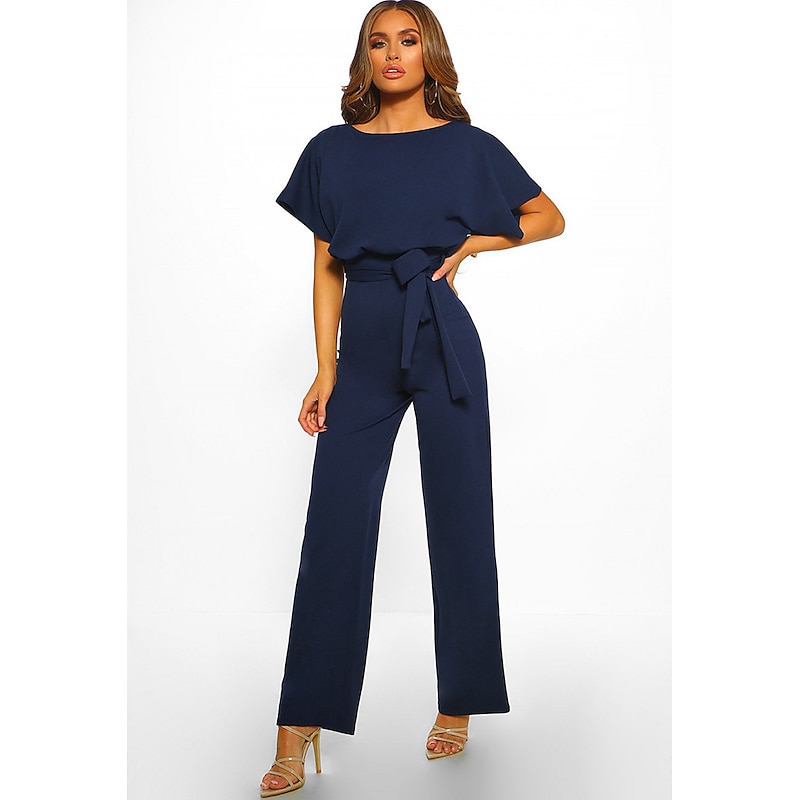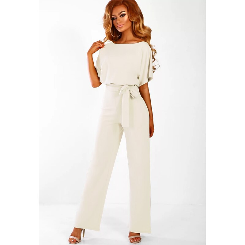 More information about Jumpsuits Elegant Dress Wedding Guest Engagement Floor Length Short Sleeve Boat Neck with Strappy dress to impress