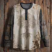 More information about Men's Graphic Tree Henley Shirt Tee Top Long Sleeve Vintage Fashion Cute Casual Holiday Going out Fall Spring & Fall Khaki Henley Henley T-Shirt