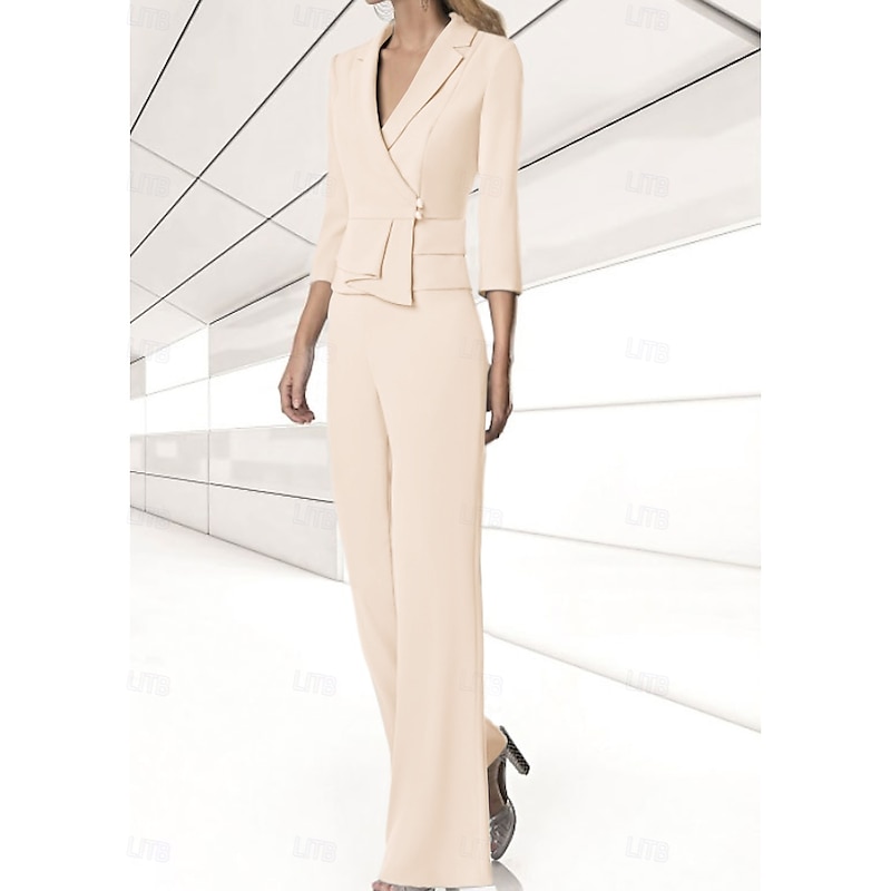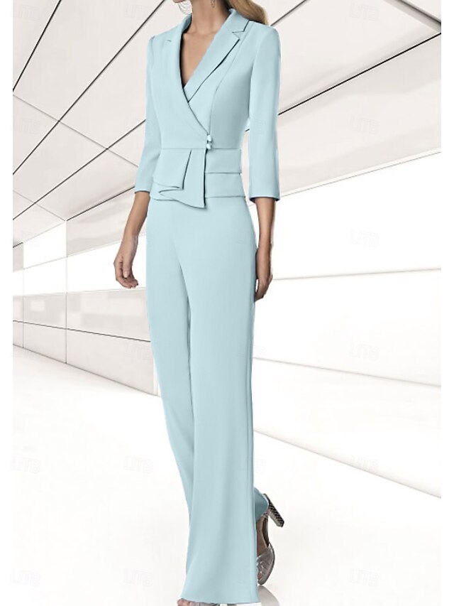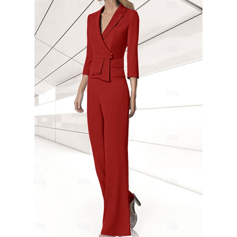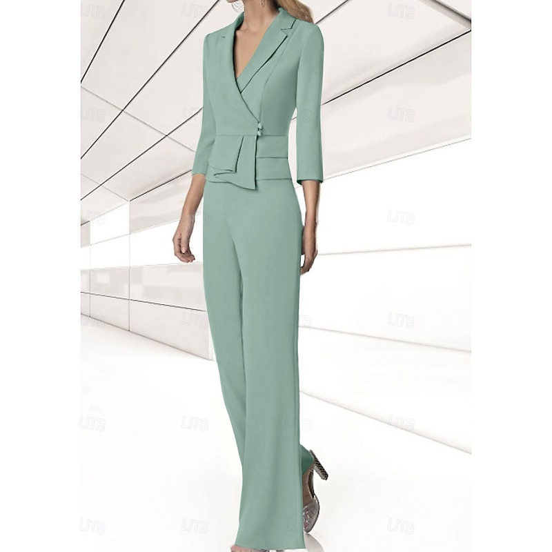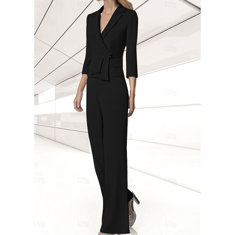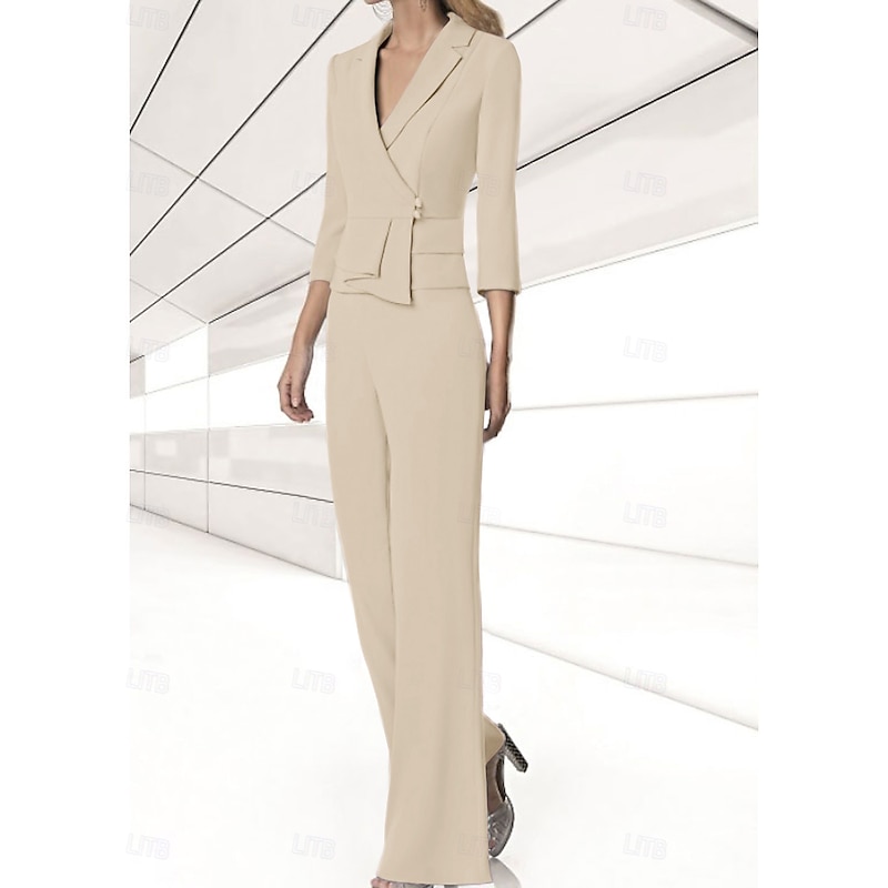 More information about Women's Suits 2 Pieces Suits Wedding Guest Chiffon Elegant 3/4 Sleeve Pleated Floor Length Notched Lapels Single Breasted